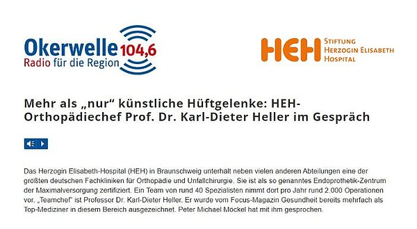 Radio Okerwelle-Interview mit Prof. Dr. Karl-Dieter Heller, Chefarzt Orthopädische Klinik, am 22.05.2023
