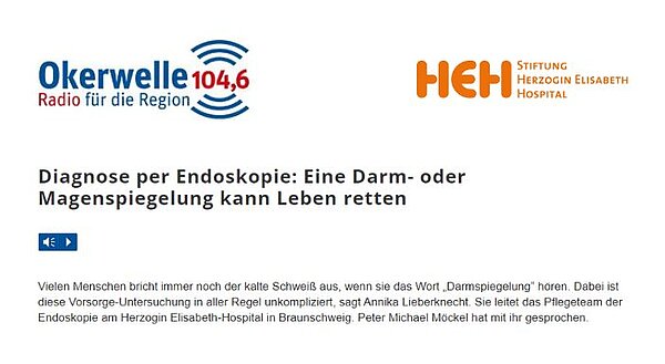 Radio Okerwelle-Interview mit Annika Lieberknecht, pflegerische Leitung der Endoskopie, am 07.09.2023