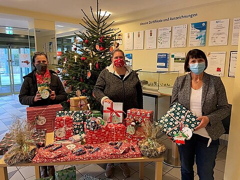 Schon zum elften Mal in Folge konnte das Herzogin Elisabeth Hospital kurz vor Weihnachten die Wünsche von 80 Braunschweiger Kindern erfüllen. Im Rahmen der Aktion "Kinder in Armut" des gemeinnützigen Vereins Parkbank e.V. überreichte Pflegedienstleiterin Birgit Förster einen Tag vor Heiligabend die liebevoll verpackten Geschenke an die Vorsitzende Claudia Fricke und ihre Stellvertreterin Alexandra Beese. Das HEH stellte dazu auch in diesem Jahr im Eingangsbereich des Herzogin Elisabeth Hospitals einen Weihnachtsbaum auf, an dem die Wünsche der Kinder im Alter von 0 bis 16 Jahren befestigt wurden.