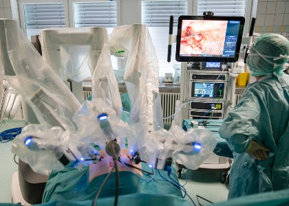 Ausgewählte Operationen führen wir mit dem minimalinvasiven Instrumentensteuerungssystem Da Vinci X ® durch. Unser Schwerpunkt liegt in der chirurgischen Behandlung von komplexen Tumoren an Magen und Darm sowie in der Adipositaschirurgie.
