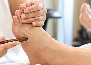 Daher ist es für Diabetiker*innen wichtig, eine regelmäßige Inspektion der Füße durchzuführen. Jeder Druck durch ein Schuhwerk ist zu vermeiden. Auf hohe Schuhqualität ist immer zu achten. In vielen Fällen ist es notwendig, ein spezielles orthopädisches Schuhwerk mit Entlastung bestimmter Fußteile anzufertigen. Weiterhin ist eine qualifizierte Fußpflege immer empfehlenswert. Trockene Haut wird mit speziellen Mitteln gepflegt, Schwielen fachgerecht entfernt, beim Nägelschneiden werden Mikroverletzungen vermieden. Die ersten Symptome einer ernsthaften Erkrankung werden durch einen qualifizierten*eine qualifizierte Podologen*Podologin erkannt, somit wird der*die Patient*in rechtzeitig zum*zur Arzt*Ärztin eingewiesen und schwerwiegende Folgen vermieden.