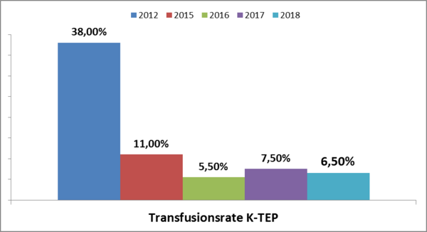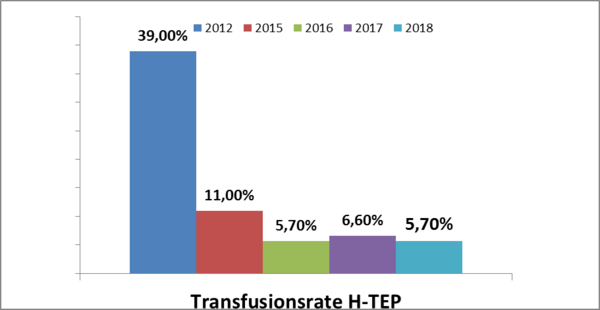 Bei den beiden häufigsten am HEH vorkommenden Operationen- der Erstimplantation einer Hüft- bzw. Knie-Prothese konnte durch die Summe der angewendeten Maßnahmen der prozentuale Anteil an Eingriffen mit Gabe von Fremdblutkonserven (Transfusionsrate) sehr deutlich verringert werden.