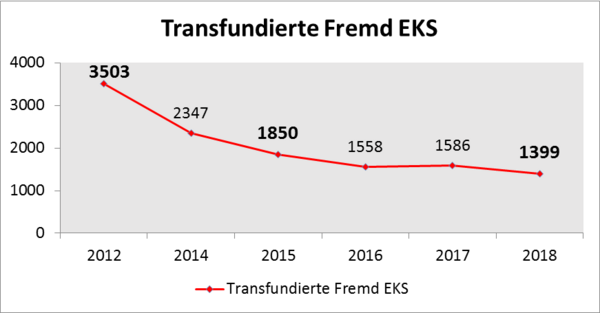 Außerdem konnte die Gesamt-Anzahl der im HEH gegebenen Blutkonserven innerhalb von sechs Jahren um mehr als die Hälfte gesenkt werden.