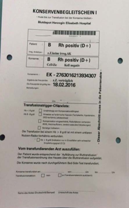 Im Rahmen des PBM- Projektes sollen diese Leitlinien bei der Indikationsstellung zur Gabe von Blutkonserven streng eingehalten werden. Daher sind diese Kriterien in einer sogenannten „Transfusionstrigger-Checkliste“ aufgeführt. Sie ist im HEH jeder Blutkonserve (EK) beigefügt. Vor jeder Gabe eines EK wird von einem*einer Arzt*Ärztin die Notwendigkeit mit Hilfe der Checkliste überprüft und dokumentiert.