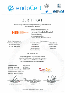 Kliniken, die sich erfolgreich zertifizieren lassen wollen, müssen eine Vielzahl von Kriterien, insbesondere im Bereich der Prozesse und der Strukturen, erfüllen. So muss ein interdisziplinäres Team vorhanden sein, das vor, während und nach der Operation eng zusammenarbeitet, um eine bestmögliche Betreuung und Gesundung des*der Patienten*Patientin zu ermöglichen. Sämtliche Abläufe in der Behandlung, vom Erstkontakt bis zur Nachsorge, müssen klar geregelt, dokumentiert und transparent sein. Jährliche unabhängige Überprüfungen sorgen dafür, dass die Qualitätsanforderungen sichergestellt und ständig verbessert werden. Endoprothetikzentren müssen gewährleisten, dass jeder Hauptoperateur*-operateurin mindestens 50 endoprothetische Operationen im Bereich des künstlichen Gelenkersatzes vornimmt. Das Angebot an Kunstgelenken muss alle Schwierigkeitsgrade abdecken. Darüber hinaus sind alle Mitarbeitenden verpflichtet, sich regelmäßig in Aus-, Weiter- und Fortbildungen auf dem Gebiet des künstlichen Gelenkersatzes weiter zu entwickeln.