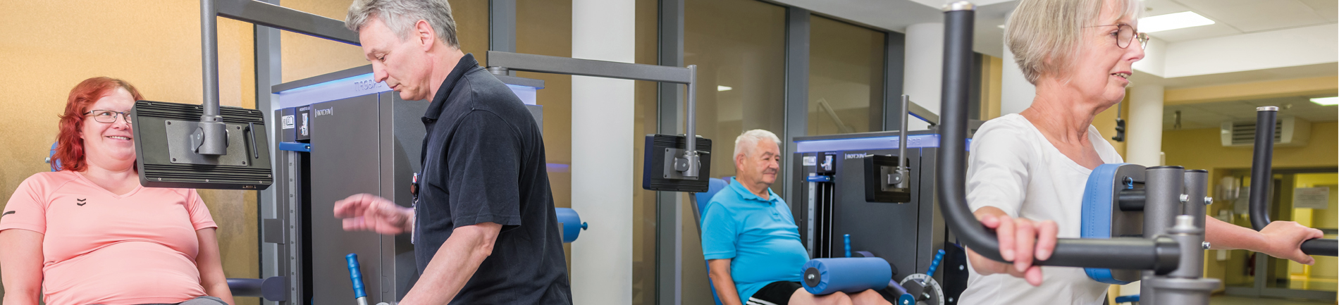 Wir verfügen über großräumige Trainingsflächen, eine hochwertige Ausstattung mit modernsten Trainingsgeräten und über ein Bewegungsbad. Durch die freundliche Atmosphäre, unsere Zugewandtheit und persönliche Betreuung durch eine feste Patient*in/Therapeut*in-Zuordnung fühlen Sie sich schnell bei uns wohl.