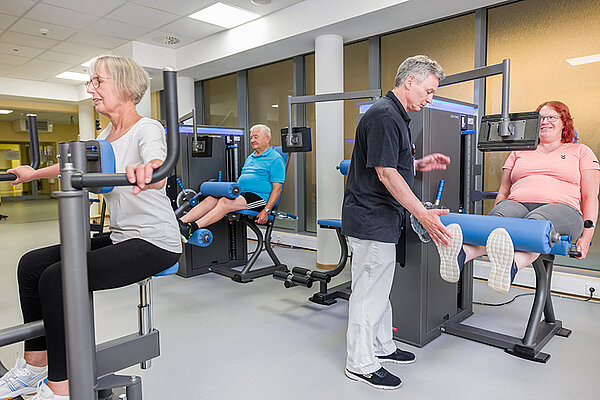 In unserem Zentrum für Physiotherapie stehen Ihnen im Rahmen der Trainingstherapie erfahrene und vielseitig qualifizierte Physiotherapeuten*Physiotherapeutinnen zur Seite, die Ihre trainingstherapeutischen Maßnahmen steuern und überwachen. Wir erarbeiten gemeinsam mit Ihnen durch eine Auswahl von bestimmten Geräten, einer Schwerpunktsetzung oder durch die Wahl des Trainingsgewichts einen auf Sie abgestimmten Trainingsplan zur Verbesserung von Ausdauer, Koordination und Kraft. Mit Hilfe dieses individuellen Trainingsplans können Sie selbstständig trainieren.