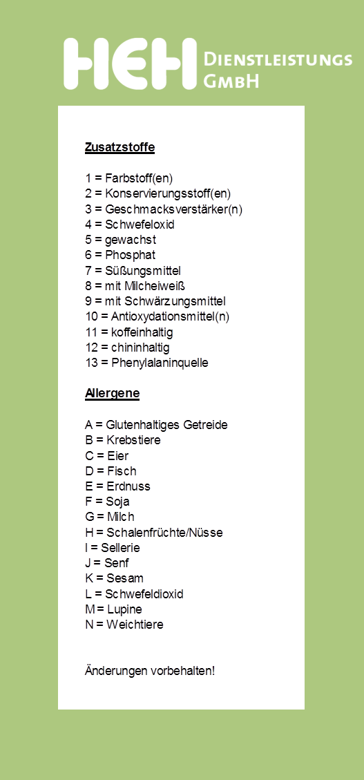 - Dessert: Tagesdessert, Fruchtjoghurt oder Quarkspeise
